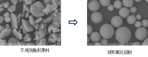 【基本說明】:球形氧化鋁粉是以火焰法將不規(guī)則角形顆粒的特定原料加工成球形而獲得的一種比表面積小、流動性好的氧化鋁粉體材料。